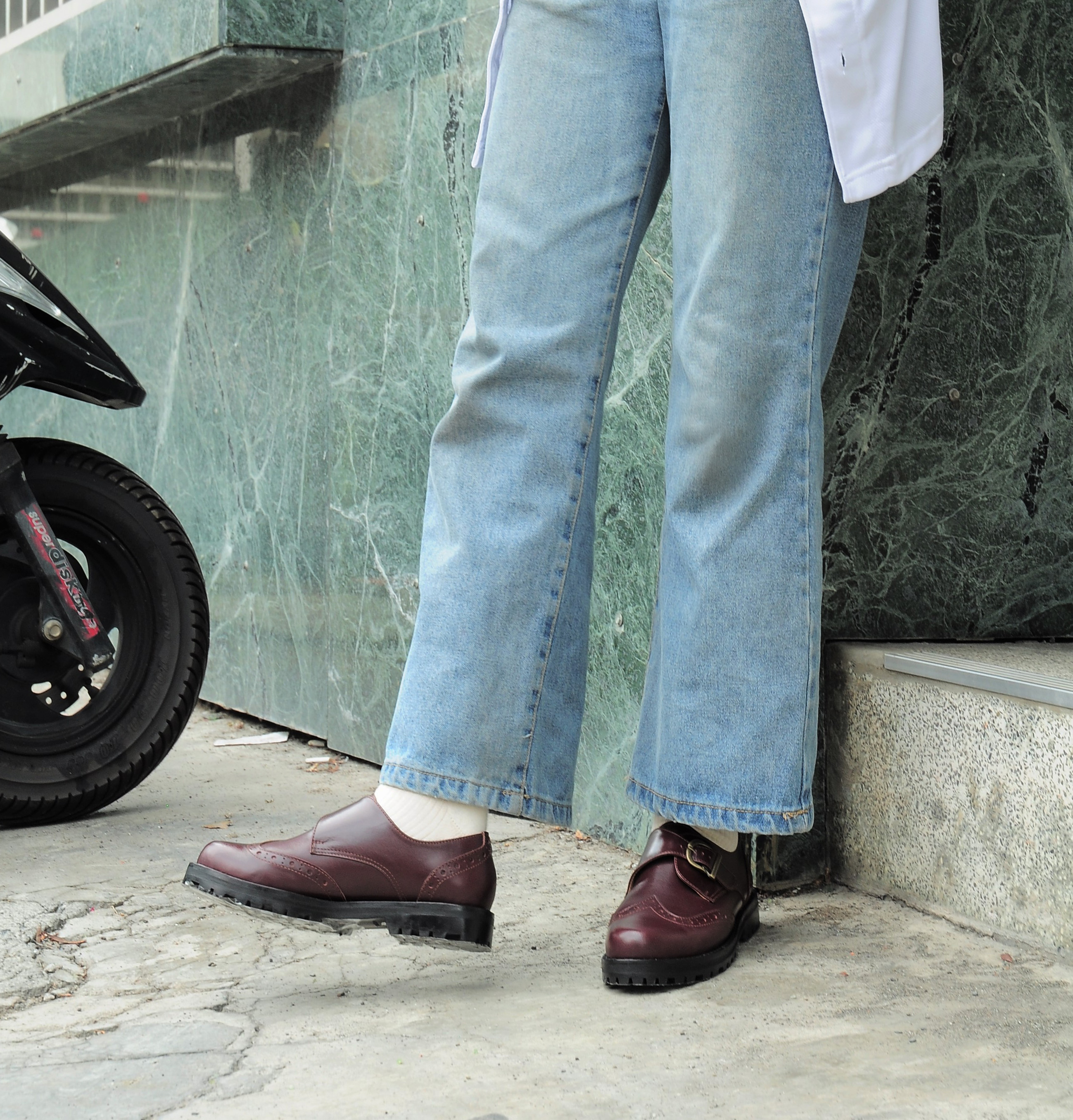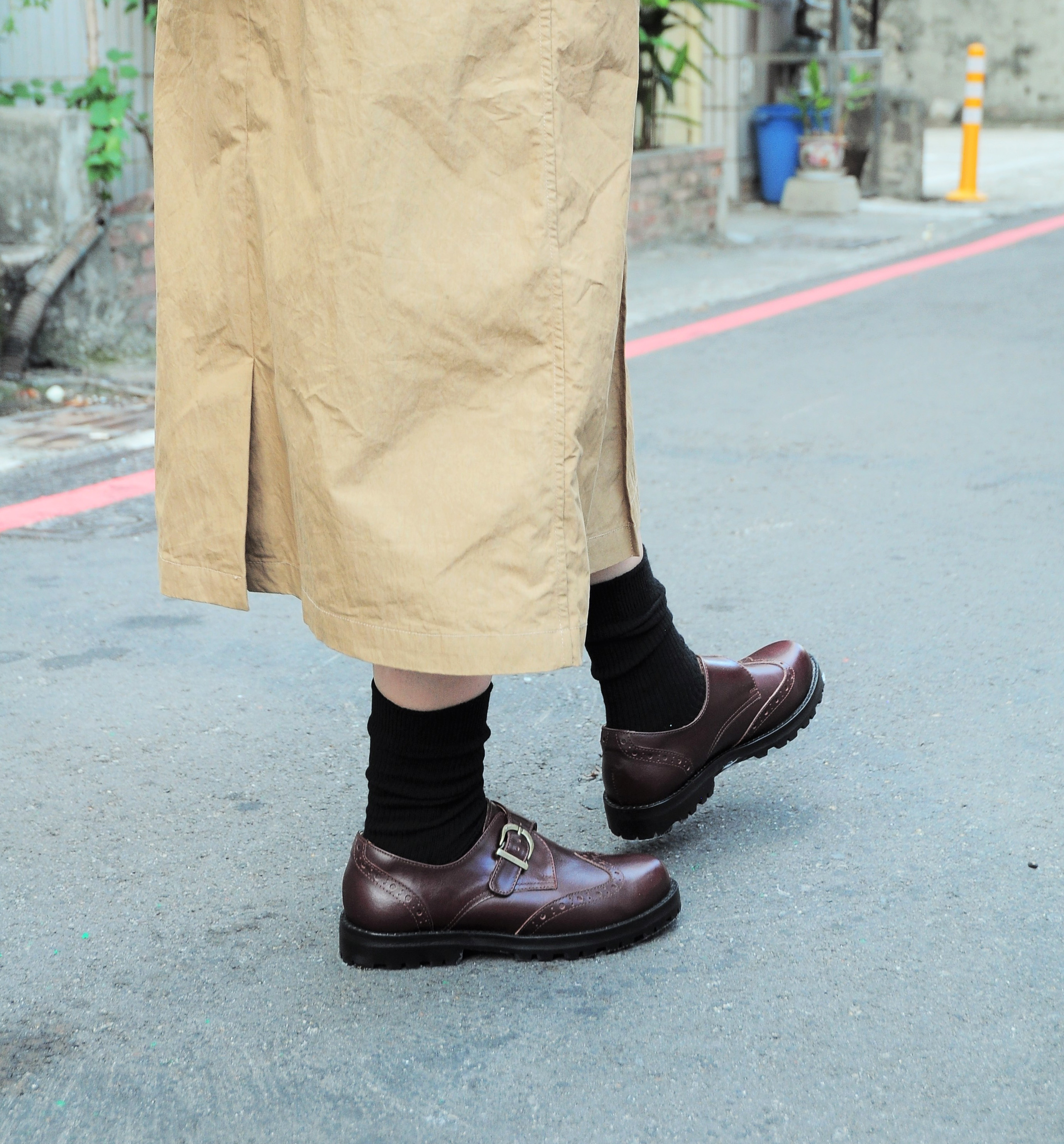 🔸鞋面-紅咖啡: 水蠟Pull-Up牛皮, 選用頭層苯染牛皮 再經多次繁複加工程序後得到的獨特視感