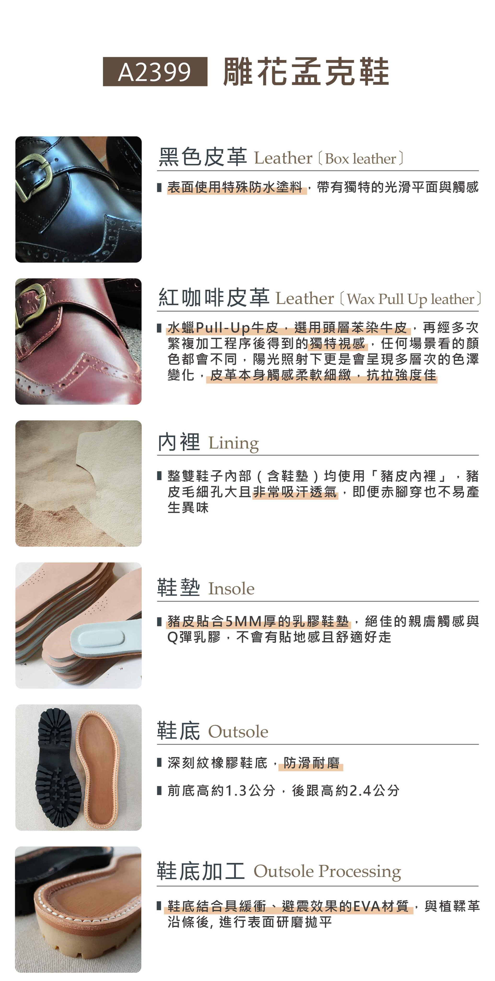 紅咖啡_升級版 雕花孟克鞋 A2399 (黑、紅咖啡 2色)