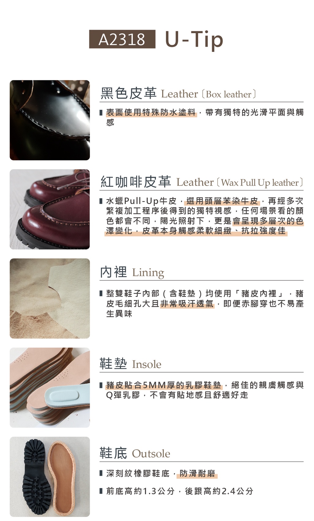紅咖啡 A2318 U-Tip Shoes (黑、紅咖啡 2色)