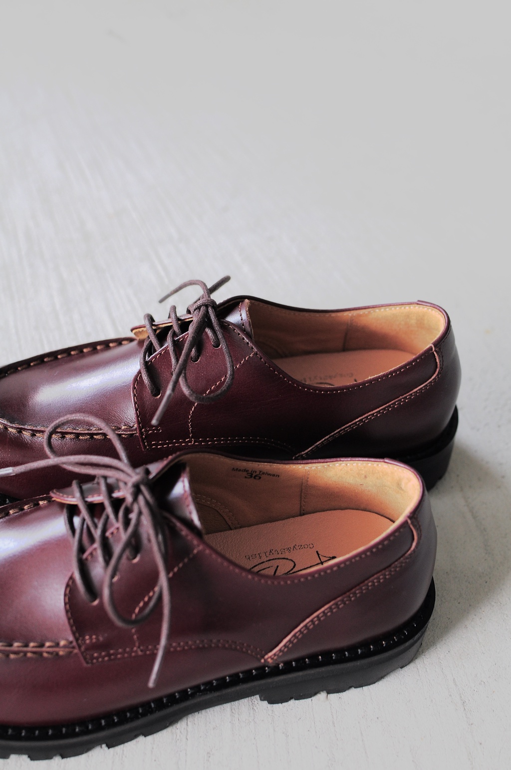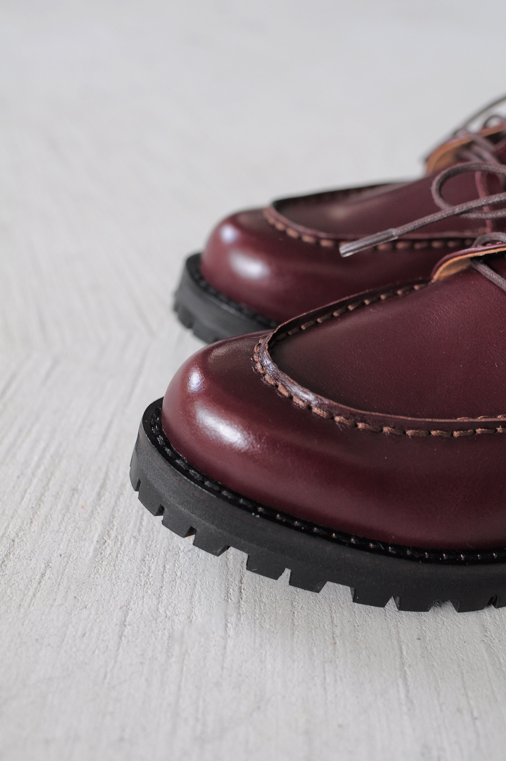 🔸鞋面-紅咖啡: 水蠟Pull-Up牛皮, 選用頭層苯染牛皮 再經多次繁複加工程序後得到的獨特視感